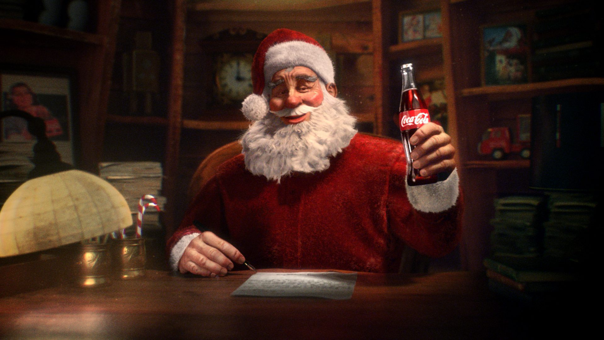 Director Sam Mason reflects on his favourite scene, that of ‘Santa’s workshop. ‘There is really an unbelievable amount of detail in there, and we didn’t stop adding until the last minute. Santo and Coca-Cola were really open to collaboration and letting our imaginations run wild.’