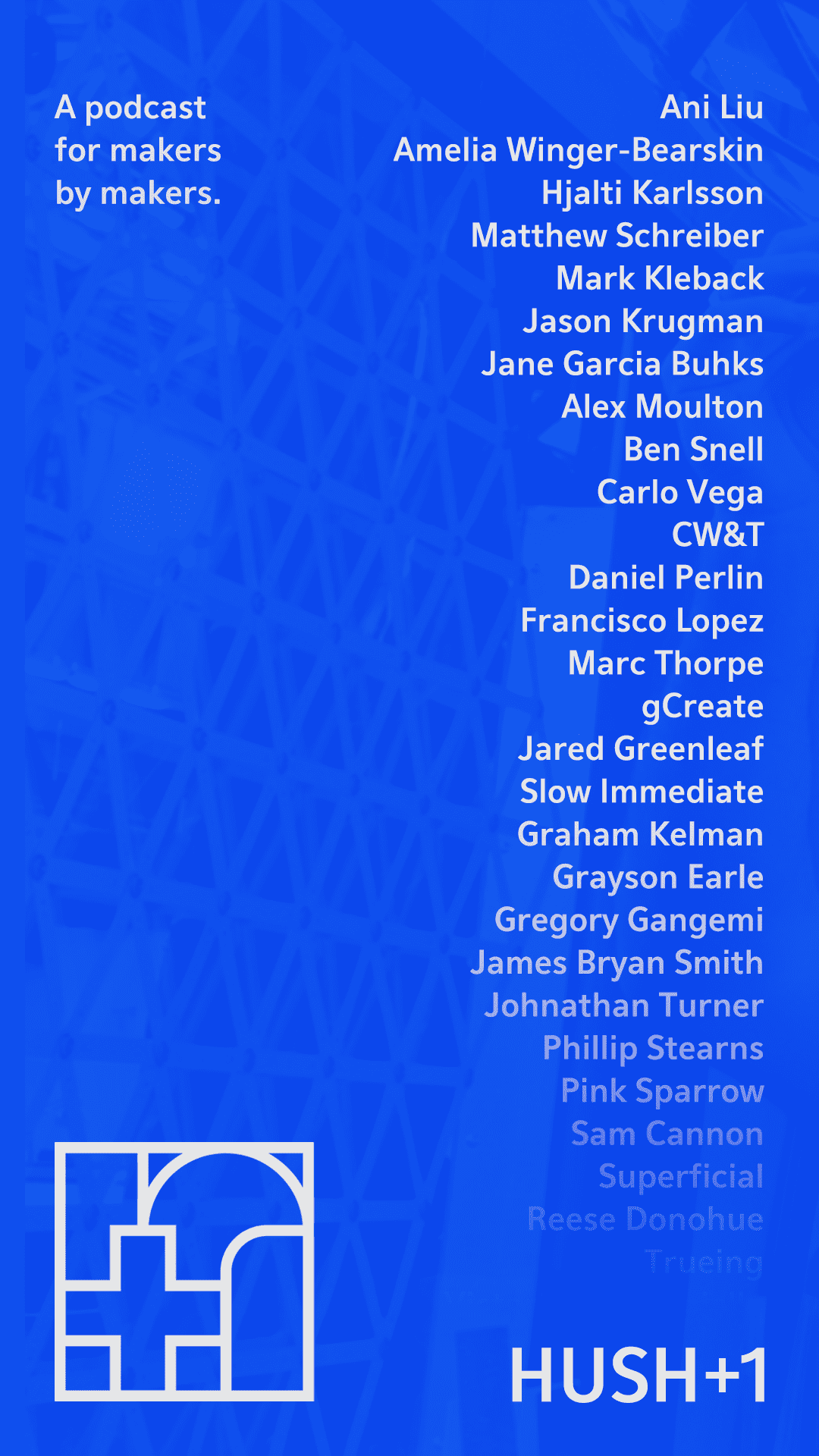 Born out of HUSH’s weekly, internal speaker series, Creative Jam, the HUSH+1 podcast is a biweekly platform for creativity, both in and outside of the design industry. The episodes host leaders from all creative walks of life — design, art, technology, architecture, fashion, engineering, fabrication, psychology, music, urban planning, and more — to discuss what they do, why they do it, and what motivates them.